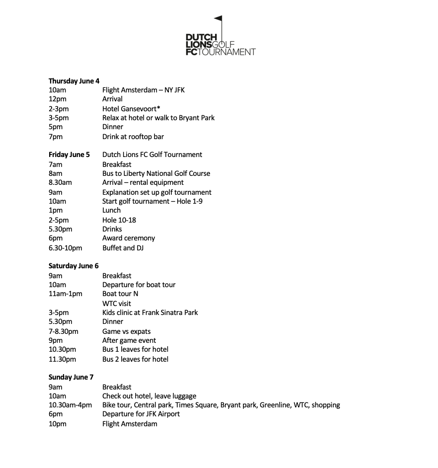 Hieronder ziet u het programma voor de 2020 Dutch Lions FC Golf Tour: